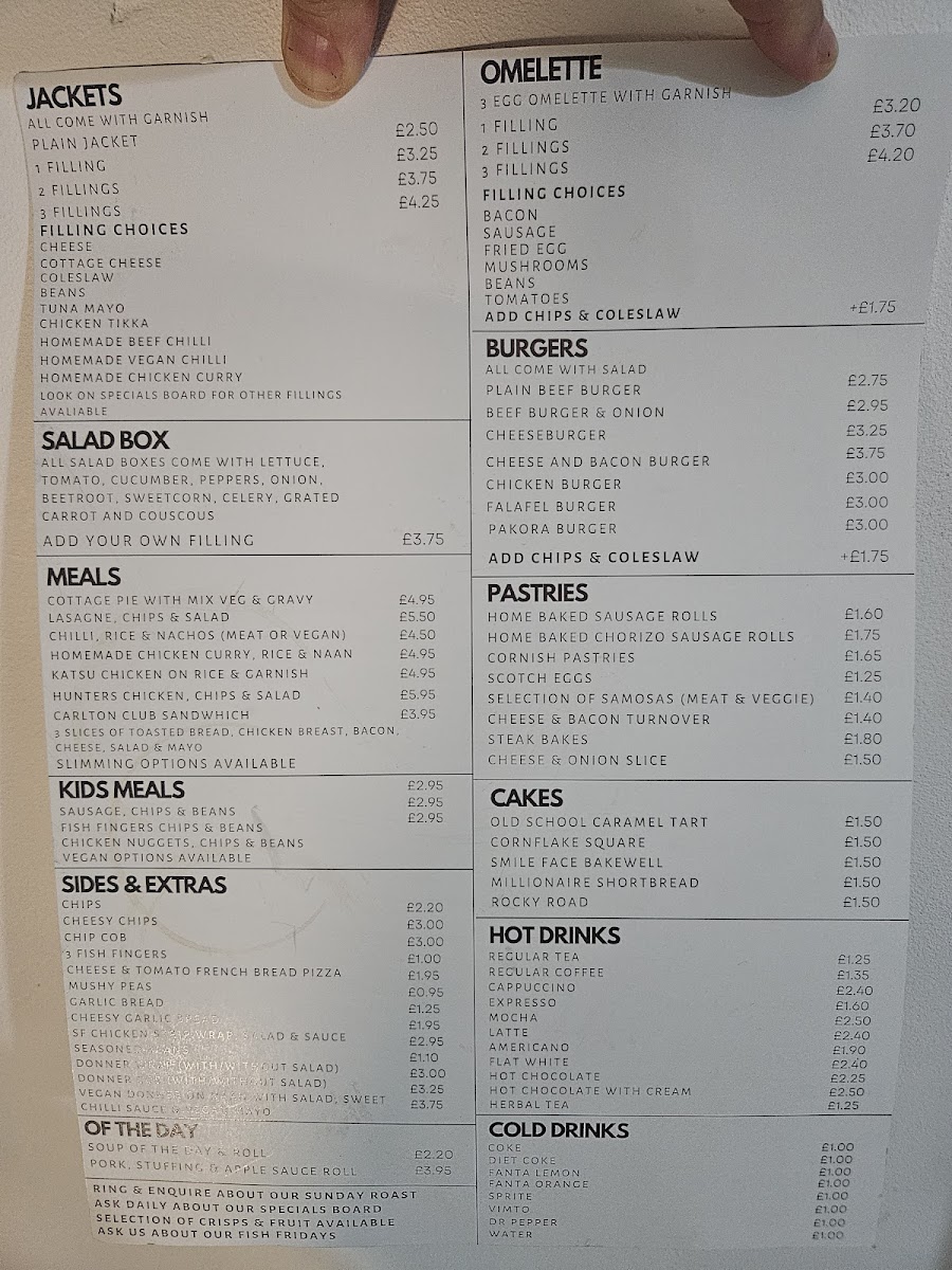 As you peruse the menu, you'll encounter comforting classics like the Cottage Pie with Mix Veg & Gravy (£4.95) and a delectable Lasagne with Chips & Salad (£5.50). For those craving a bit of spice, the Homemade Chicken Curry (£4.95) will surely hit the spot. Don't miss out on their cakes, like the rich Old School Caramel Tart (£1.50) or the indulgent Millionaire Shortbread (£1.50), perfect for satisfying your sweet tooth.